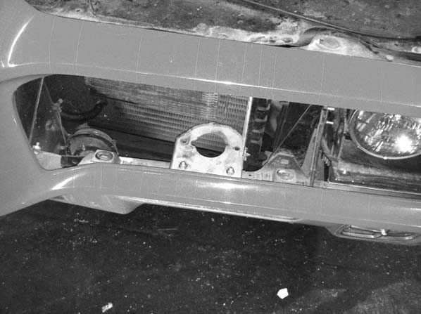 Remove your black plastic grille piece in front of the vacuum actuator. Each grille piece is mounted with two bolts on top of the nose section and with two Z-shaped lower steel brackets.